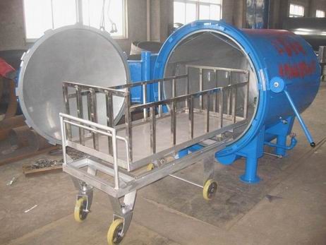 该“蒸箱”的使用特点是:适用范围广泛,既能湿热定型(将饱和蒸汽直接通入筒体内),又能干热定型(将饱和蒸汽通入夹套内,由筒体内壁散热)。大门 开关轻便,物体装卸迅速,密封性能好,热定型效率高,使用安全可靠。定型后的产品诸如强力伸长度等物理机械性能不受影响,保证了产品的质量。